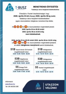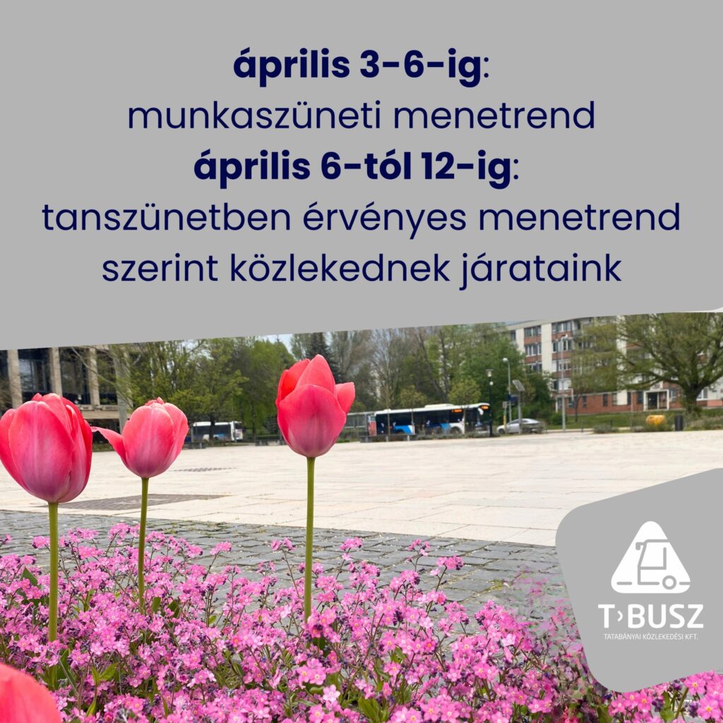 Tatabányai helyi autóbuszjáratai a hosszú hétvégén péntektől hétfőig (április 3-6-ig) a munkaszüneti napon érvényes,