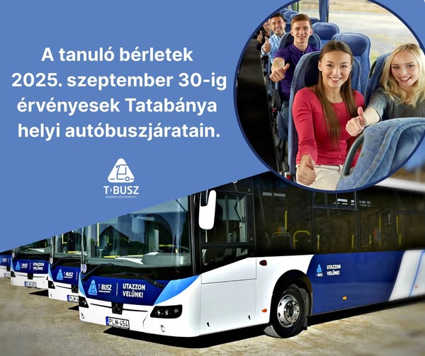 A tanuló bérletek 2025. szeptember 30-ig érvényesek Tatabánya helyi autóbuszjáratain.
